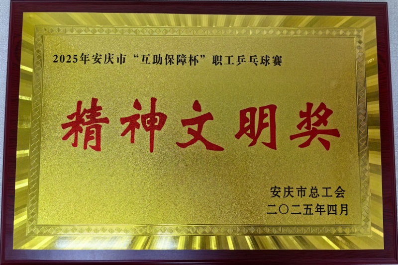 4月25日—27日,在市總工會主辦的“強國復興有我 勞動創(chuàng)造幸福”2025年安慶市“互助保障杯”職工乒乓球團體賽中,同安控股乒乓球代表隊憑借優(yōu)良的賽風賽紀和團隊精神榮獲“精神文明獎”。