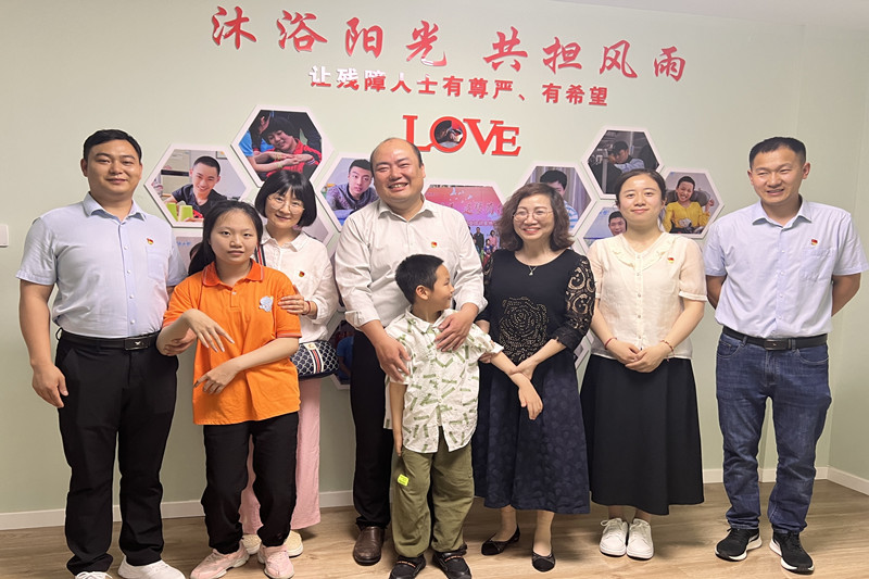 活動中,康復中心負責人和教學老師帶領大家參觀了孩子們?nèi)粘I?、學習等各個區(qū)域,并與兩名結(jié)對幫扶兒童進行親切互動,了解他們的身體狀況和生活、學習情況,鼓勵他們堅定信心,積極樂觀面對生活。