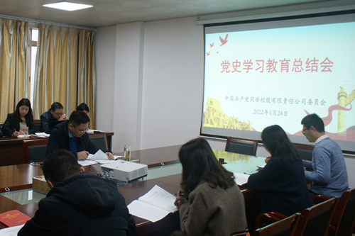 2022年1月24日,同安控股黨委召開黨史學(xué)習(xí)教育總結(jié)會(huì)議,深入學(xué)習(xí)貫徹習(xí)近平總書記關(guān)于黨史學(xué)習(xí)教育的重要指示精神、在省部級(jí)主要領(lǐng)導(dǎo)干部學(xué)習(xí)貫徹黨的十九屆六中全會(huì)精神專題研討班開班式上的重要講話精神和黨中央、省委、市委黨史學(xué)習(xí)教育總結(jié)會(huì)議精神,回顧總結(jié)公司黨史學(xué)習(xí)教育成效和經(jīng)驗(yàn),對鞏固拓展黨史學(xué)習(xí)教育成果,建立常態(tài)化、長效化制度機(jī)制,持續(xù)推動(dòng)黨史學(xué)習(xí)教育走向深入進(jìn)行部署和安排。會(huì)議由公司黨委書記、董事長、總經(jīng)理王亮主持,公司領(lǐng)導(dǎo)班子成員、各黨支部書記、各部室(子公司)主要負(fù)責(zé)人和部分黨員代表參加會(huì)議。